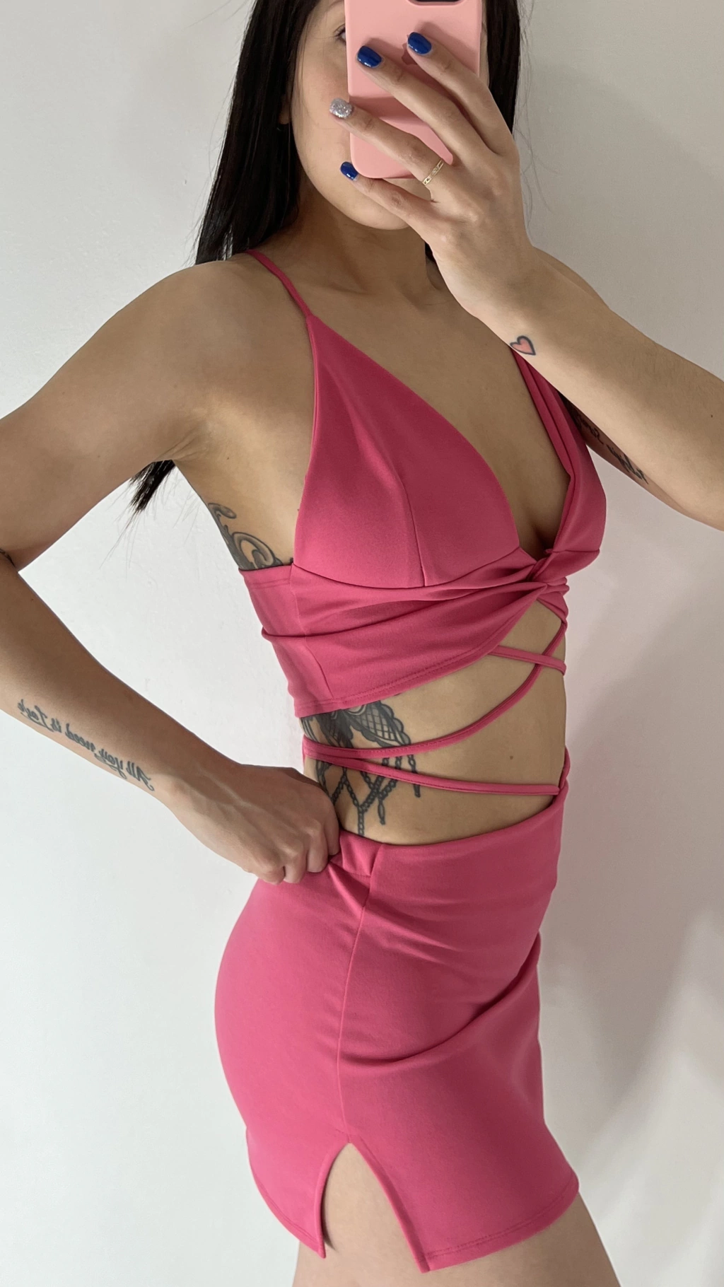 Detalles: Tiras para atar en cintura y tajos en los costados